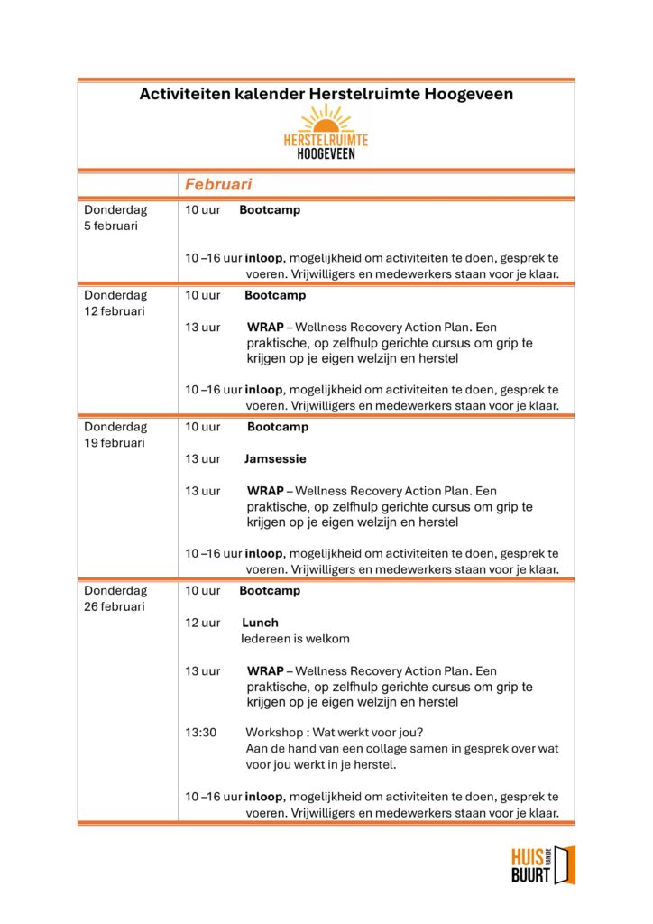 Activiteitenkalender Herstelruimte