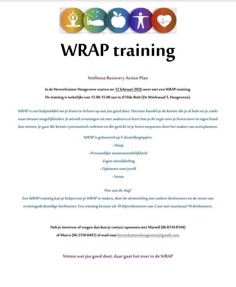 In de Herstelruimte Hoogeveen starten we vanaf 12 februari as. weer met een WRAP-training.